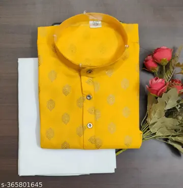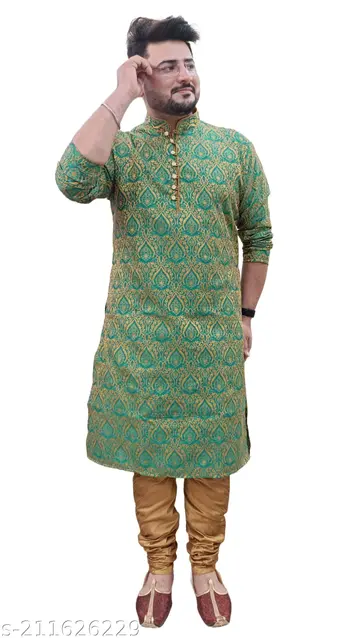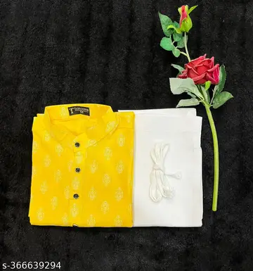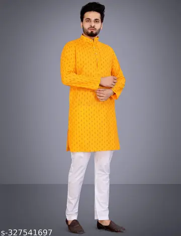LONG PRINTED KURTA SET FOR MEN( YELLOW ) / Pajama with Dual Pockets