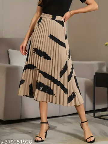 Brush Print Pleated Skirts, Vintage Elastic Waist Midi Skirts, Women's Clothing
